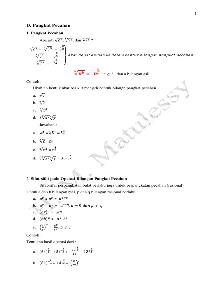 Bilangan Pangkat Pecahan Definisi Rumus Sifat Operasi