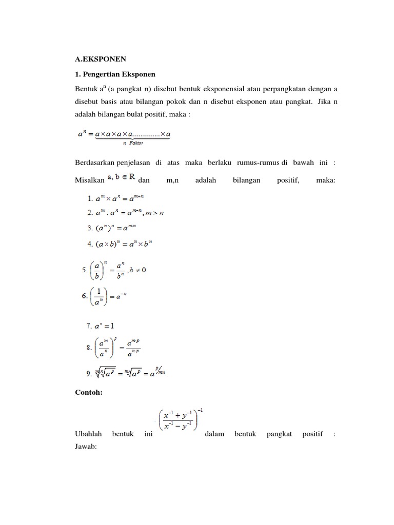 Bentuk Pangkat Eksponen Akar Dan Logaritma