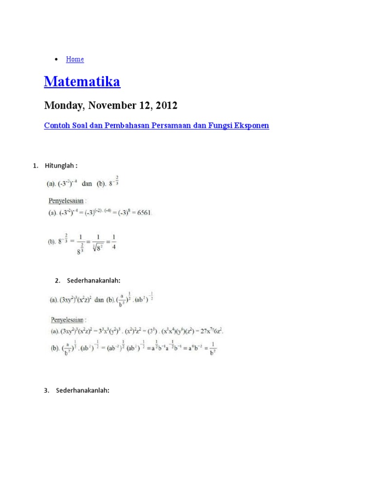 Contoh Soal Dan Pembahasan Persamaan Eksponen Mathematics