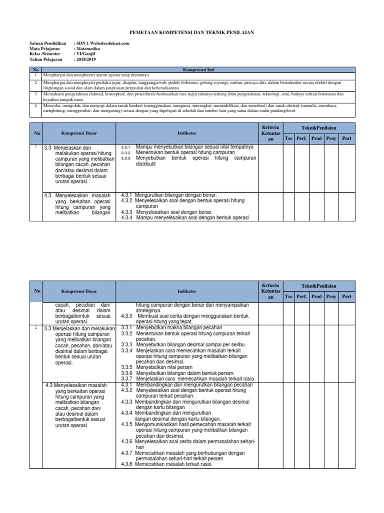 Silabus Matematika Sd Kelas 6 Kurikulum 2013