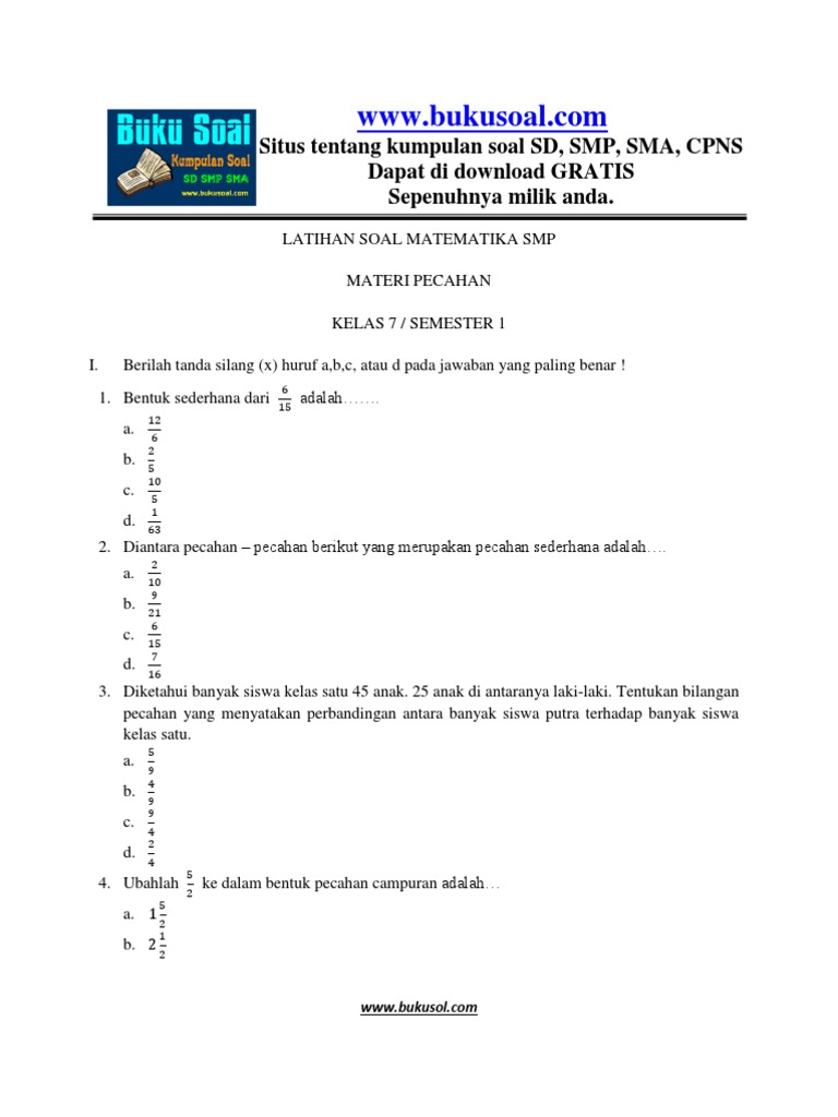 Contoh Soal Pecahan Kumpulan Soal Pelajaran 5