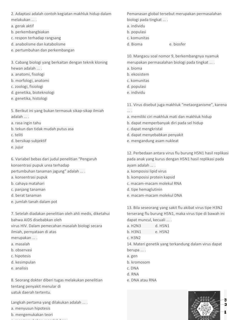 Kisi Kisi Us Biologi A Cabang Cabang Biologi Contoh Soal 1