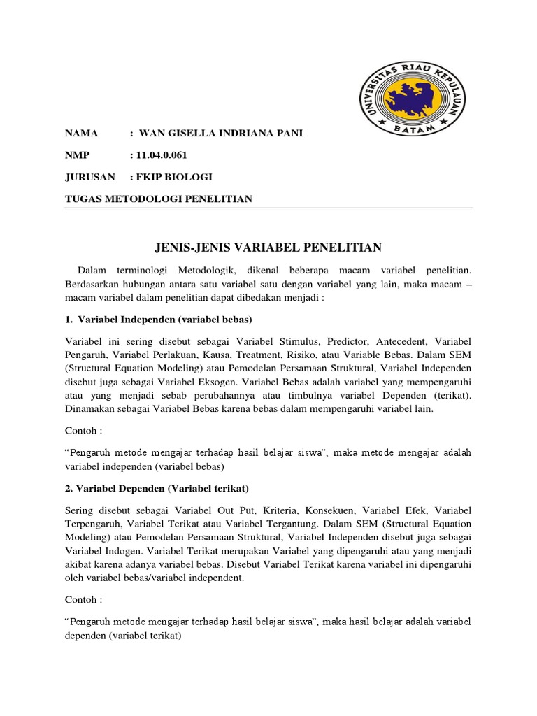 Contoh Variabel Bebas Dalam Penelitian Biologi Surat Ras