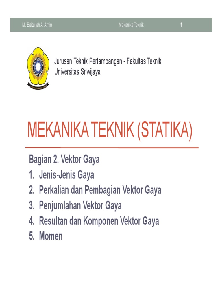 Modul 1 Pengertian Dasar Statika Statika Dan Mekanika Dasar