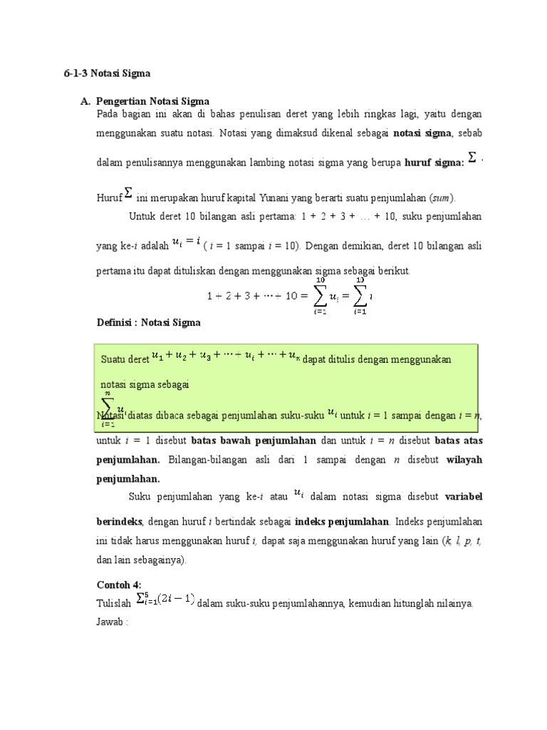 Kerjakanlah soal soal yang ada pada contoh soal belum di bahas atau belum dibuktikan. Contoh soal notasi sigma kelas 11 zona ilmu 6. Notasi sigma adalah sebuah tanda yang digunakan untuk menuliskan penjumlahan secara singkat.