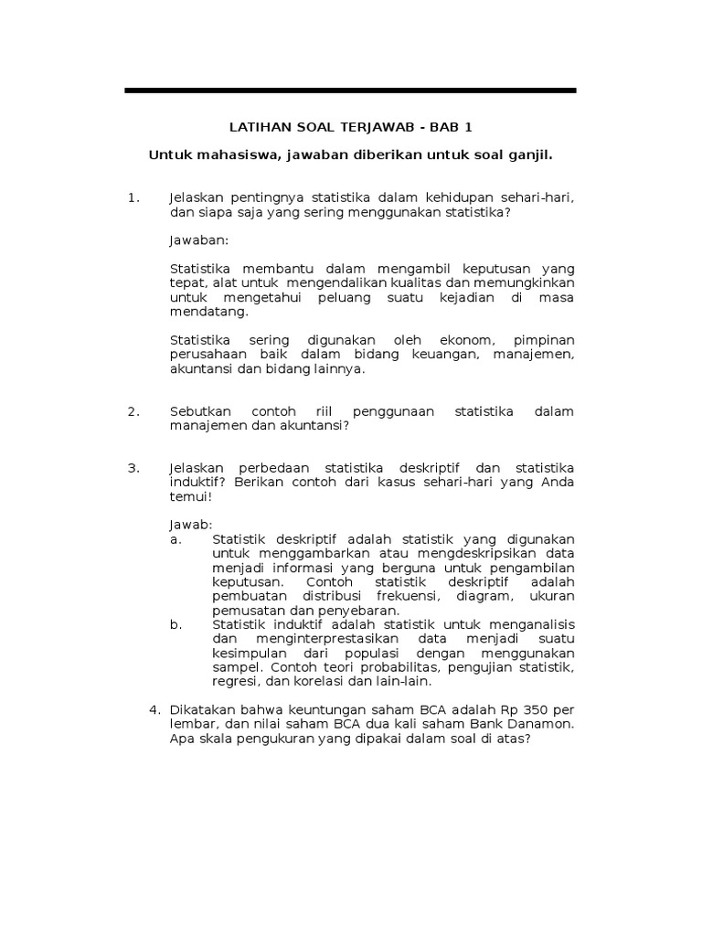Contoh soal statistika deskriptif dan jawaban. Download rangkuman contoh soal statistika dalam. Contoh soal dan pembahasan tentang statistika sma contoh soal dan pembahasan tentang rumus rata rata contoh soal dan pembahasan tentang rata rata data kelompok contoh soal dan pembahasan tentang modus data kelompok contoh soal dan pembahasan tentang median data kelompok contoh soal dan pembahasan tentang simpangan kuartil contoh soal dan. Contoh soal tentang statistika ini disusun dalam bentuk pilihan berganda disertai dengan pembahasan dan dirancang sedemikian berdasarkan beberapa subtopik yang paling sering keluar dalam kajian statistika.