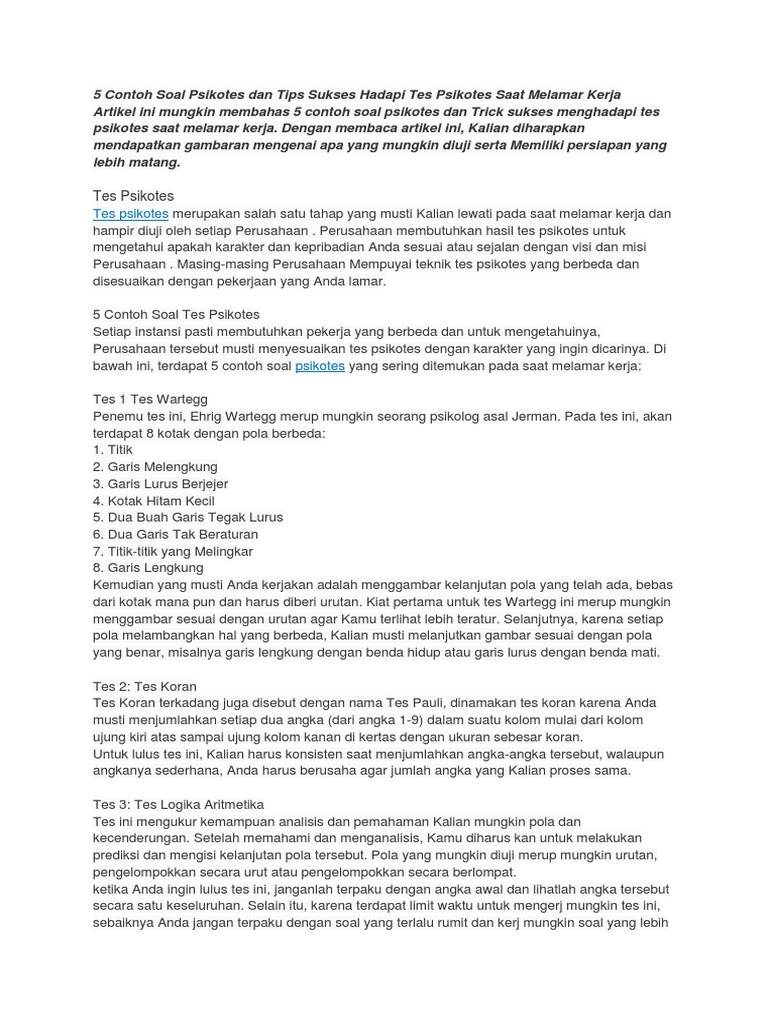 Doc Tips Lulus Dan Contoh Soal Psikotes Adji Develop