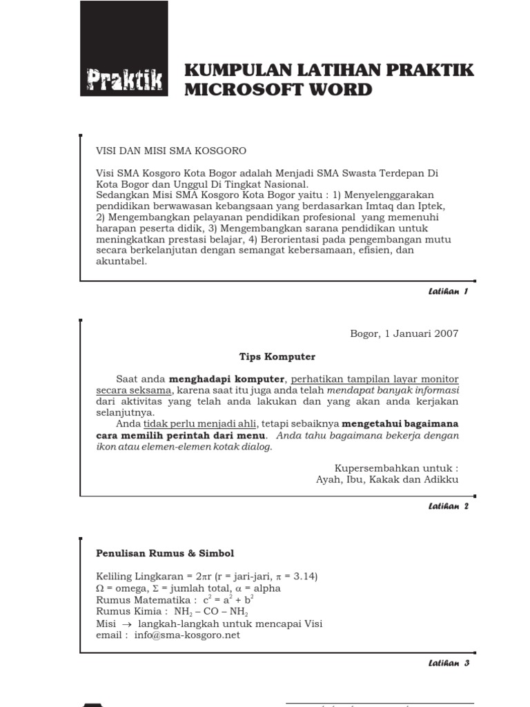 Download contoh latihan soal praktek microsoft word selamat pagi kawan semua kali ini saya akan share sebuah latihan soal yang sangat mudah untuk temen temen mengembangkan kemampuan dasar tentang ms.