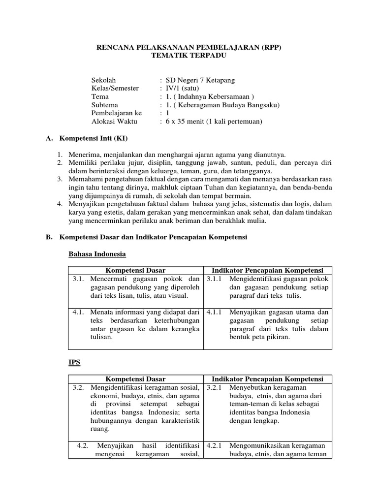 Rpp Kelas 4 Tema 1 Sub Tema 2 Pembelajaran 1 Kurikulum 2013