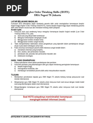 Pedoman Penyusunan Soal Hots Higher Order Thinking Skill