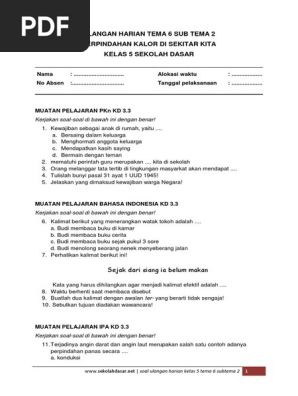 Ulangan Harian Kelas 5 Tema 6 Subtema 2 Pdf