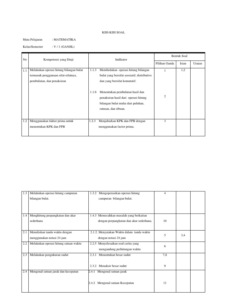 Bahan Ajar Matematika Kelas 5 Semester I Pdf