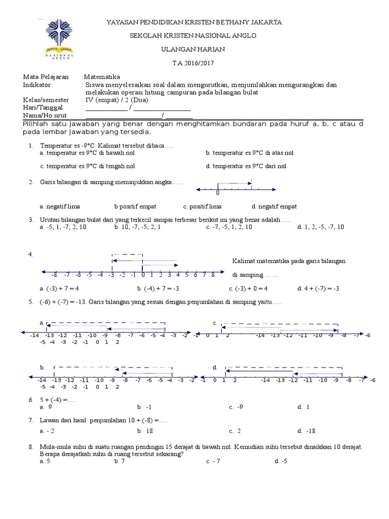 Contoh Soal Bilangan Bulat Sd Contoh Soal 1