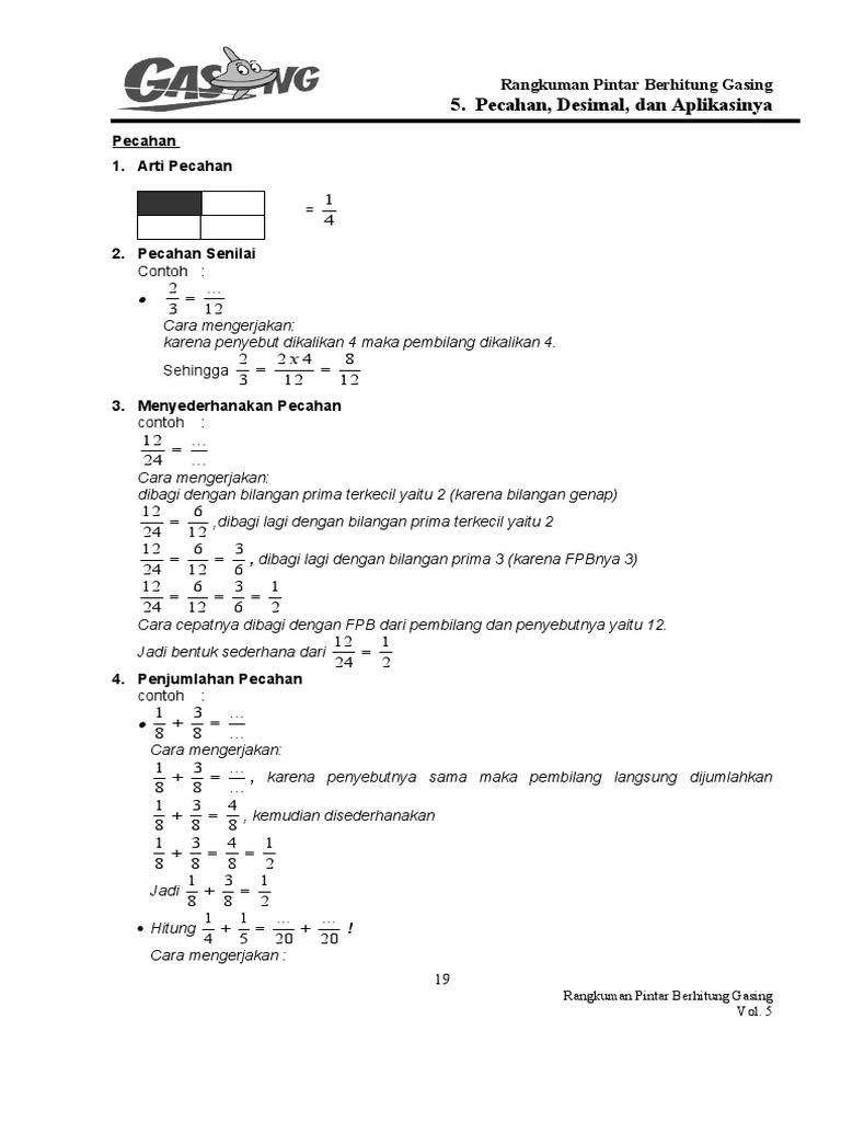 Cara Menghitung Pecahan Biasa Campuran Dan Desimal