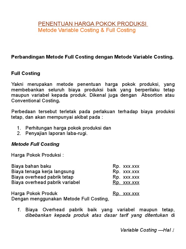 Doc Variable Costing Dan Full Costing Achmed E Academia Edu