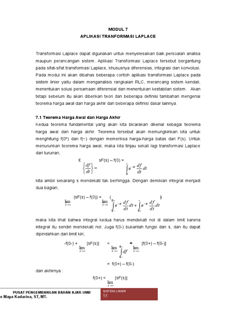 Modul 7 Aplikasi Transformasi Laplace 1 Doc Document
