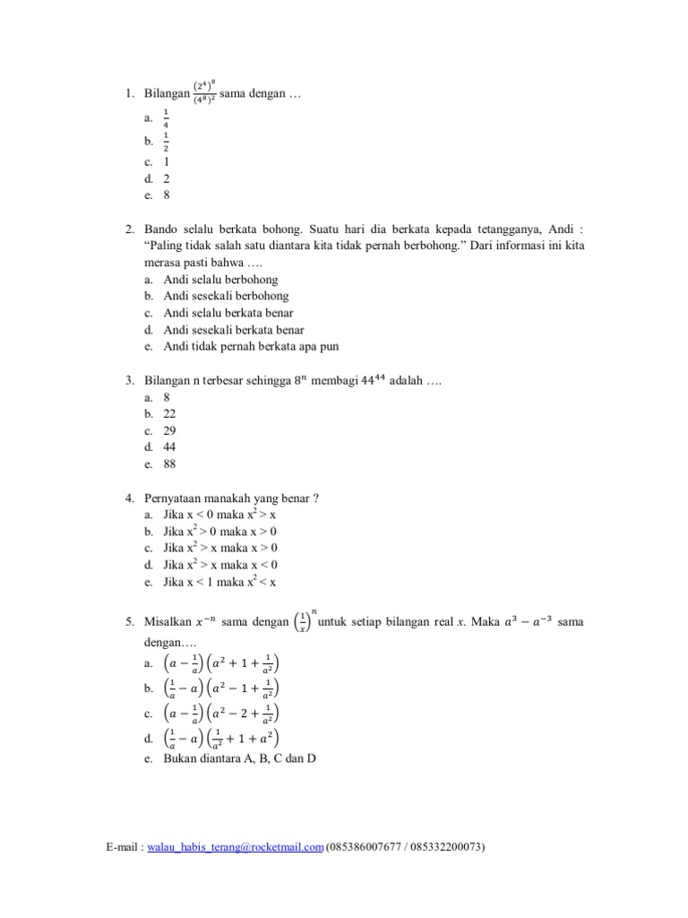 Bank Soal Olimpiade Matematika Sma Tipe 1 2 3 4 Lengkap