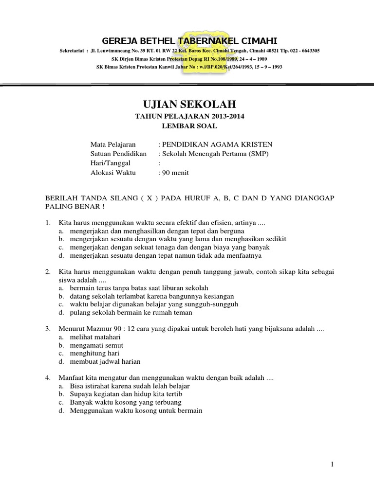 Soal Essay Agama Kristen Beserta Jawabannya