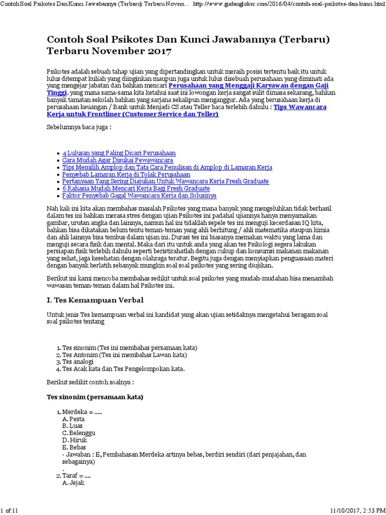 Contoh Soal Psikotes Pdf Terbaru Gratis Download Lulusan