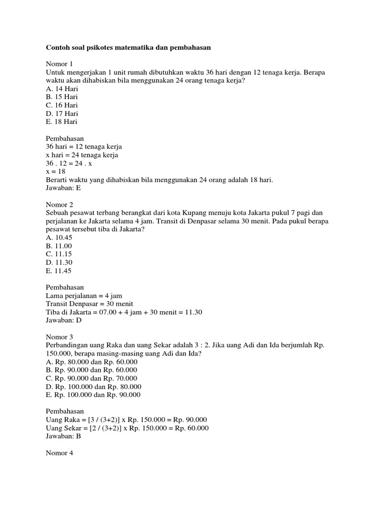 Contoh Soal Psikotes Matematika Dan Pembahasan Docx