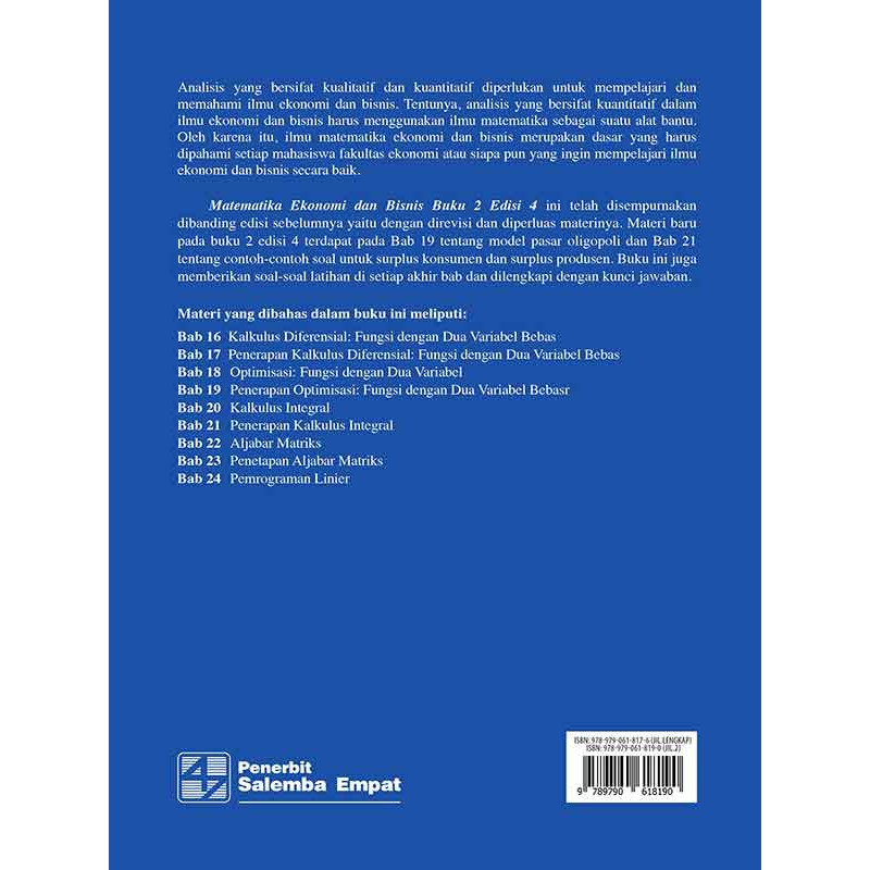 Matematika Ekonomi Dan Bisnis Edisi 4 Buku 2 Josep Bintang Kalangi