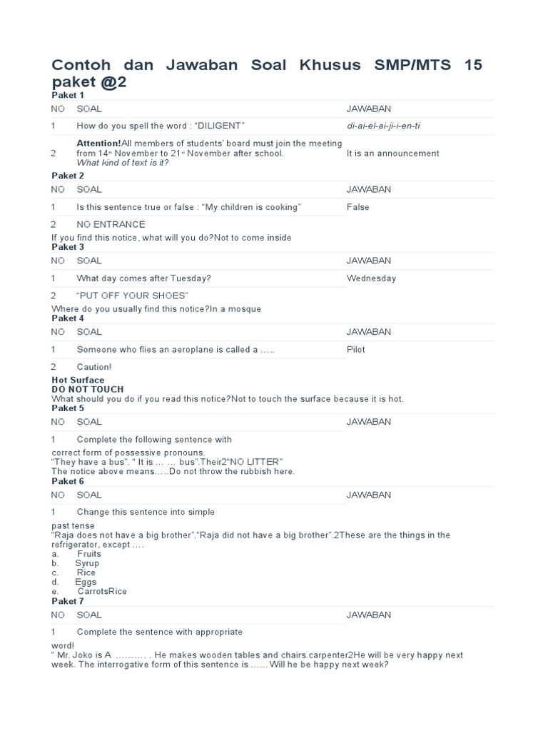 Contoh Dan Jawaban Soal Khusus Smp Docx