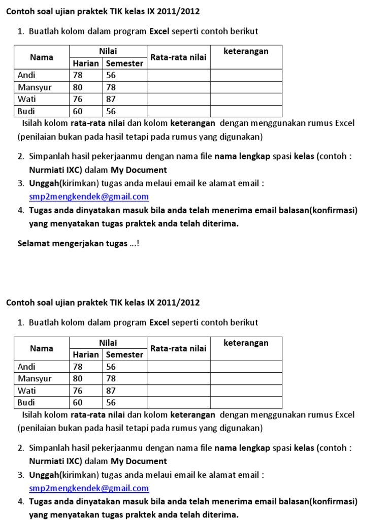 Contoh Soal Ujian Praktek Tik Kelas Ix 2011