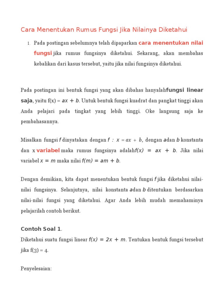 Contoh Soal F(X)=Ax+B. Secara umum dapat dituliskan sebagai ax + b. Agar semakin paham perhatikan contoh soal di bawah ini :