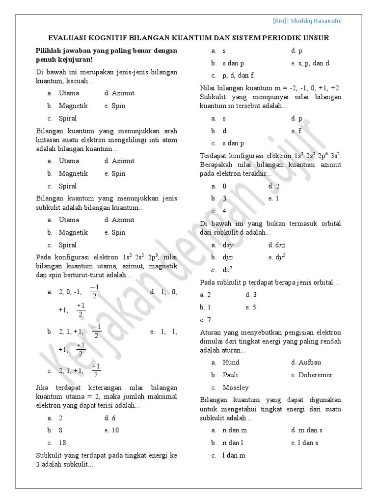Contoh Soal 4 Bilangan Kuantum. Nilai bilangan kuantum terdiri dari. Oleh aji pangestudiposting pada 6 juni 20196 juni 2019.