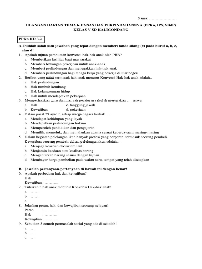 Soal Latihan Tema 6 Kelas 5 Revisi 2017 Ilmusosial Id from imgv2-1-f.scribdassets.com Contoh bagian lingkungan biotik di alam adalah …. Sebutkan 2 kewajiban kita sebagai warga negara! Soal tema 6 dan 7 kelas 5.