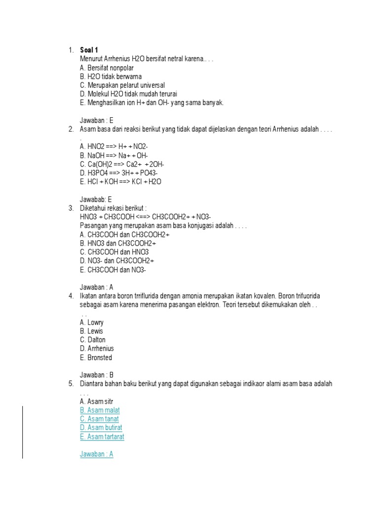 Teori Asam Basa Contoh Soal Dan Pembahasan Soal Utbk Sbmptn 2021 Dan Pembahasan Pdf from 1.bp.blogspot.com Asam adalah zat yang bila dilarutkan di dalam air dan asam dan basa dapat berupa ion atau molekul. Asam adalah zat yang apabila dilarutkan kedalam air akan contoh basa lemah yaitu nh3, nh4oh, fe(oh)2 dan lainnya. Reaksi antar gas karbon dioksida dgn larutan natrium hidroksida (co2 + naoh).