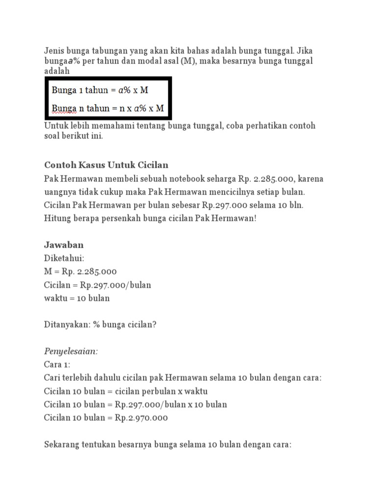 Pak arkan meminjam uang di bank sebesar rp10.000.000,00 dengan bunga sebesar 12% per tahun. Yang bunga tunggal ygmn kak yg kesatuatau yg kedua atau semua nya bunga tunggal. Jenis bunga tabungan yang dibahas adalah bunga tunggal. Cara menghitung persentase bunga bank.