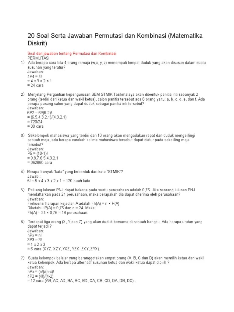 5 Contoh Soal Permutasi Dan Kombinasi. Masalah tersebut merupakan masalah permutasi 2 objek dari 6 objek sehingga ada: Teknik penggunaan permutasi dan kombinasi tentunya memiliki tujuan yang berbeda.