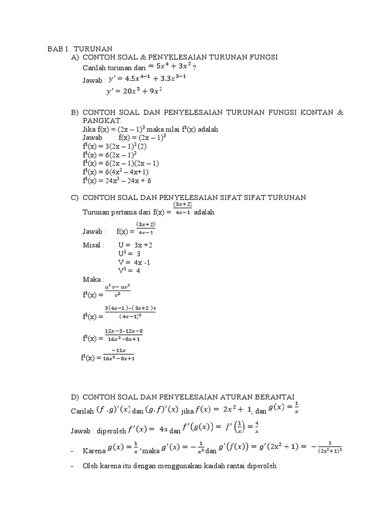 Turunan Fungsi Aljabar Rumus Dan Contoh Soal from 13.229.96.57 Untuk menyelesaikan contoh soal materi turunan fungsi aljabar di atas, kita harus menentukan turunan pertama f'(x) terlebih dahulu. Di sesi ini, kita khusus membahas soal mengenai turunan fungsi aljabar. Tinggi maksimum yang bisa ditempuh peluru adalah ….