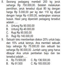 Contoh Soal Aritmatika Sosial. Simak kumpulan soal un dengan materi aritmatika sosial pada pembahasan di bawah. Dapatkan rangkuman materi, contoh soal mengenai aritmatika sosial untuk kelas 7 tingkat smp dilengkapi dengan pembahasannya disini.