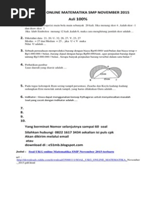 Soal Ukg Online Matematika Smp. Soal ukg matematika smp 2015 1. Latihan soal ukg online tahun 2015 untuk guru mata pelajaran matematika smp ini terdiri dari 15 soal.