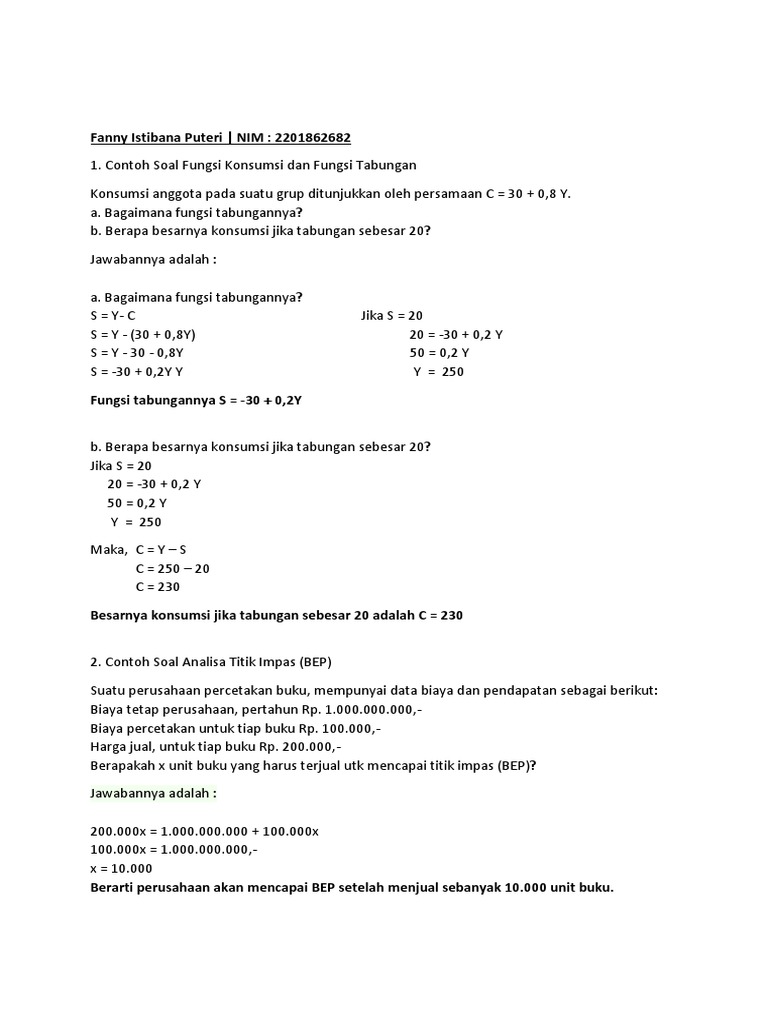 7 contoh soal fungsi konsumsi dan tabungan ◦ bila diketahui bahwa fungsi konsumsi ditunjukkan oleh persamaan c= 10 + 0,75 y maka carilah fungsi tabungannya.