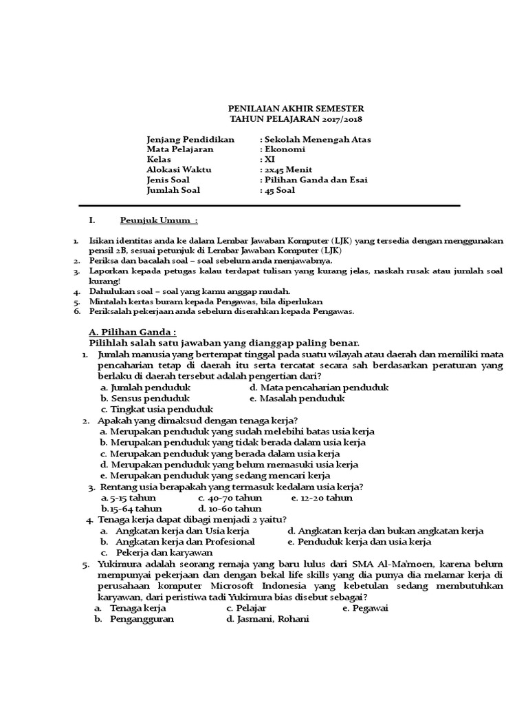 Soal Soal Ekonomi Kelas 11 Ilmu Soal from imgv2-2-f.scribdassets.com Kerjakanlah soal anda pada lembar jawaban. Setelah kurikulum 2013 di revisi, terdapat perubahan pada istilahnya. Pernyataan diatas ialah pengertian dari….