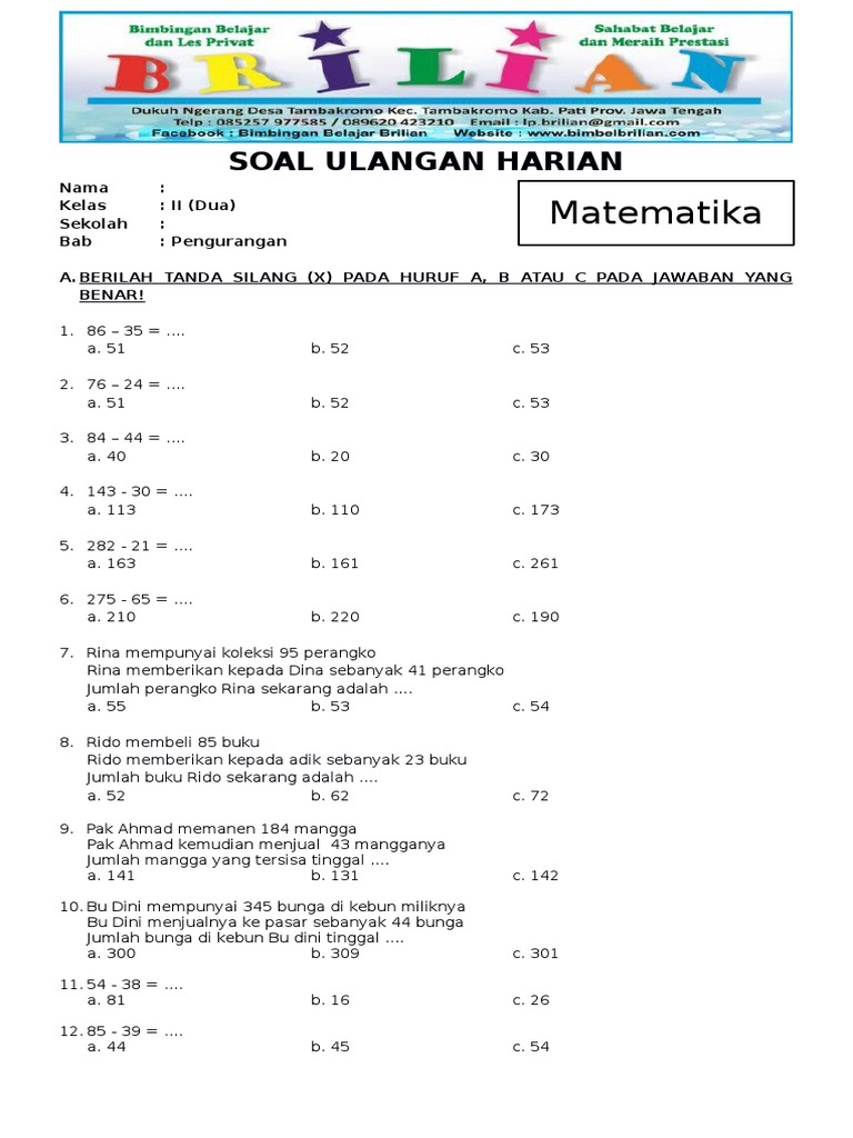Soal Matematika Kelas 2 Sd Semester 2. Bagi sahabat pena pengajar yang belum sempat membacanya bisa mengunjungi pada tautan di atas. Download soal uas matematika kelas 2 sd semester 2 dan kunci jawaban.